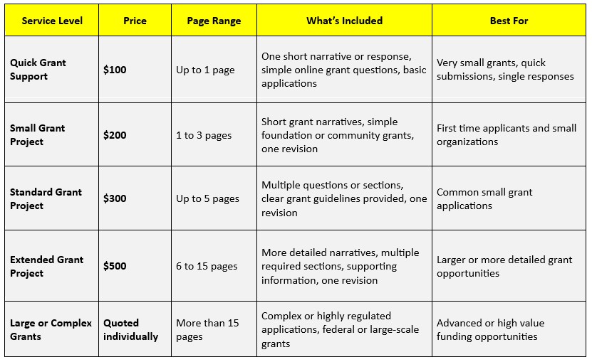 If your organization is seeking funding and needs professional grant writing support, we are ready to assist.
